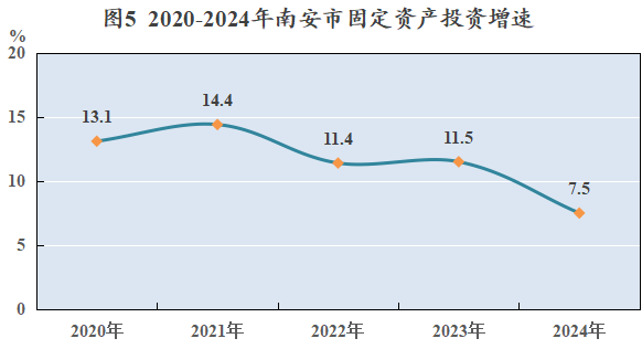 全年固定资产投资比上年增长7.5%。其中,第一产业投资增长3.3%,第二产业投资增长10.1%,第三产业投资增长5.7%。建安投资增长11.3%,工业投资增长10.1%,基础设施投资增长61.5%,民间投资下降0.5%。