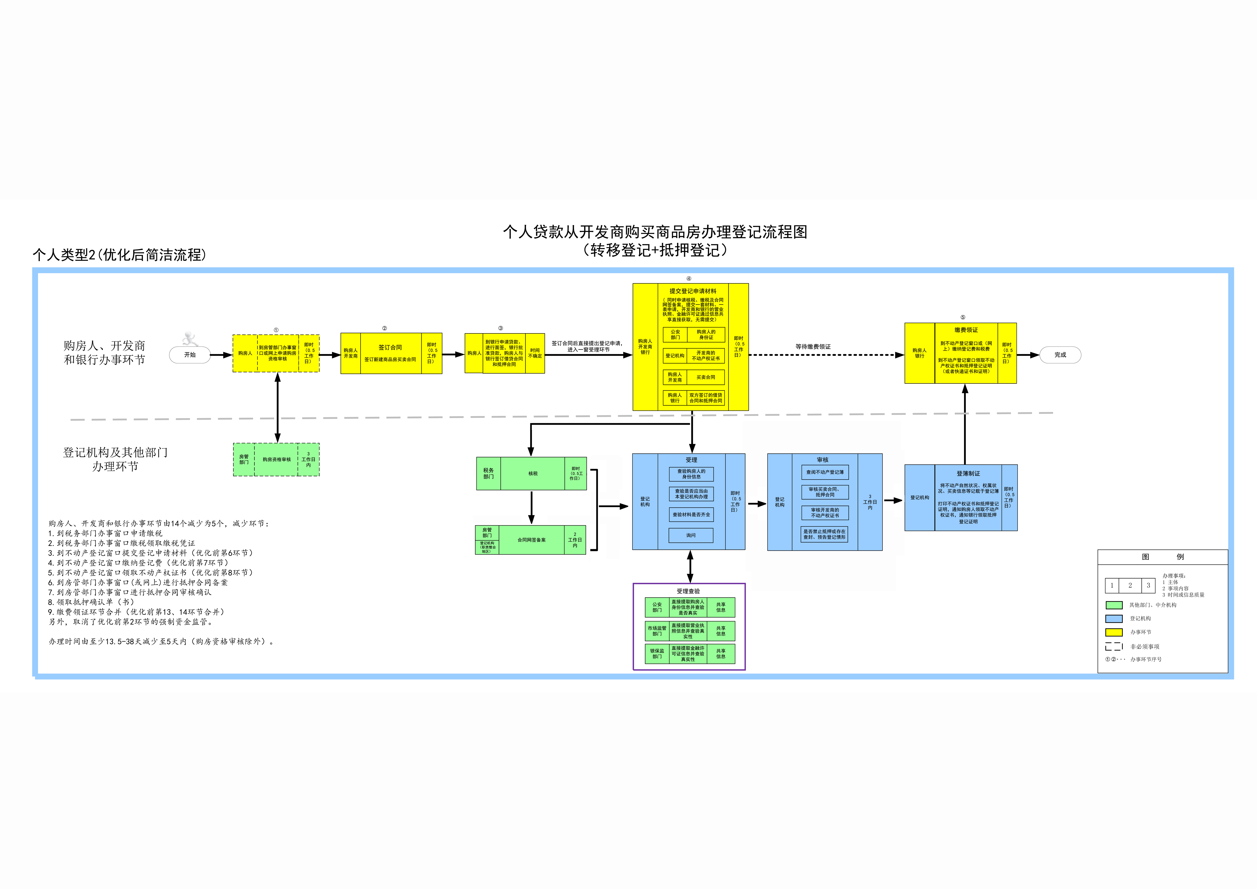 个人类型2个人贷款从开发商购买商品房办理登记流程优化图(转移登记+抵押登记)