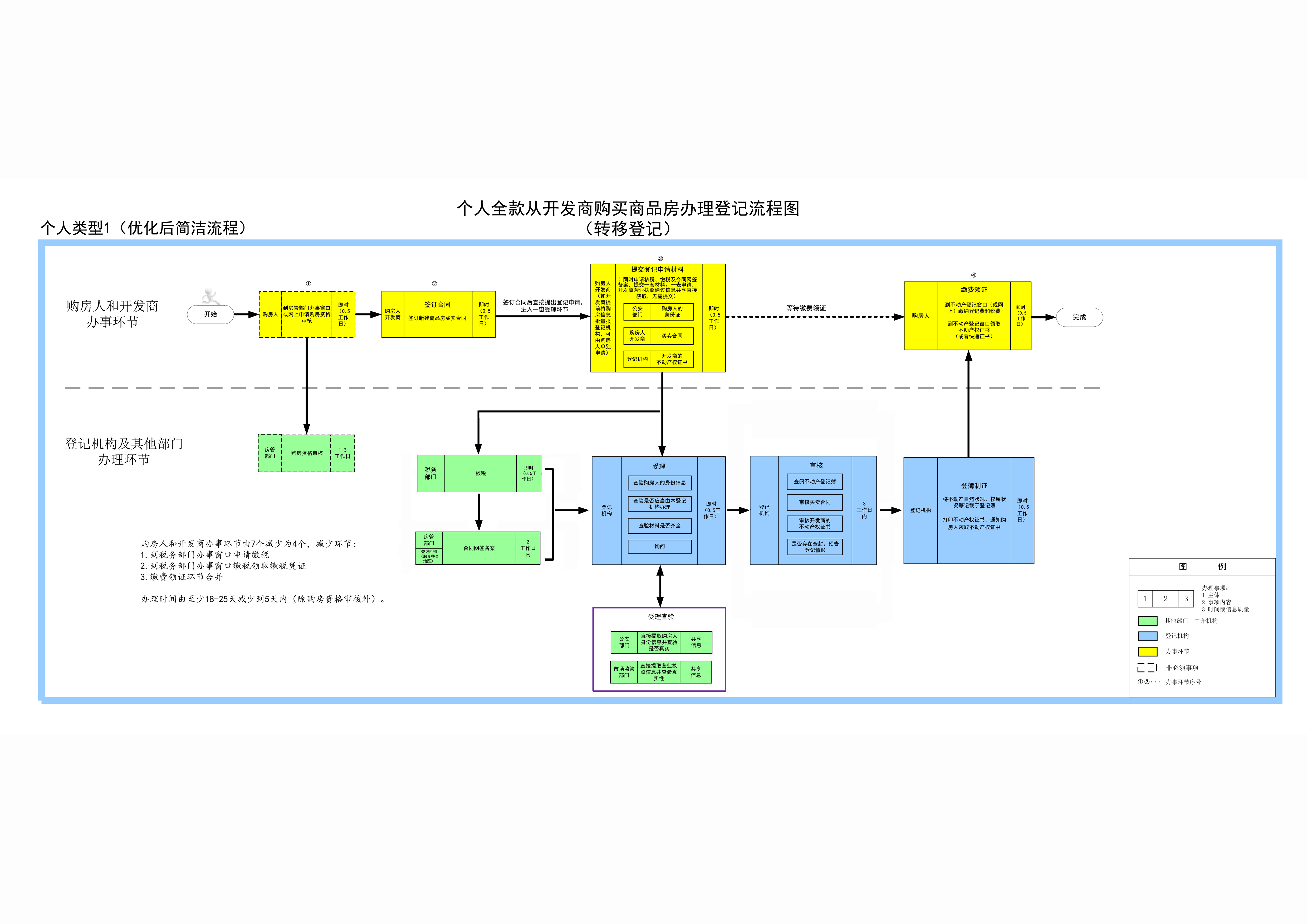 个人类型1个人全款从开发商购买商品房办理登记流程优化图(转移登记)