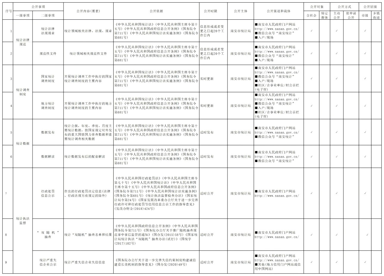 统计领域基层政务公开标准目录